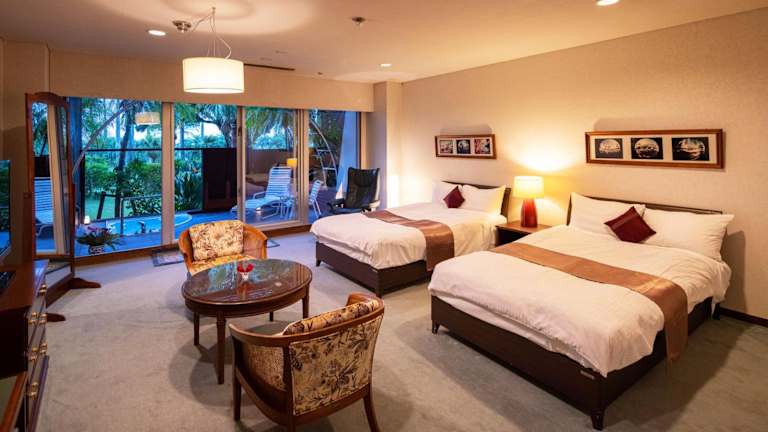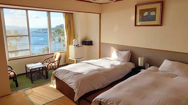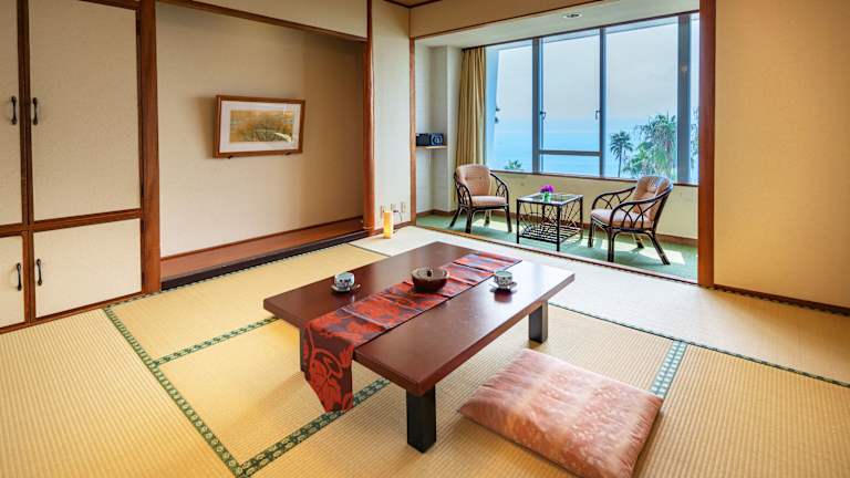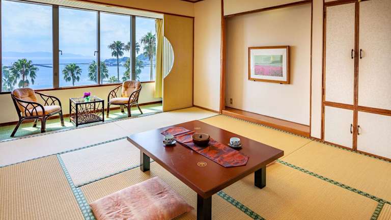 Die klimatisierten Zimmer im Ibusuki Phoenix Hotel bieten nicht nur einen spektakulären Meerblick, sondern auch traditionelle japanische Elemente wie Tatamiböden und Futonbetten. Jedes Zimmer verfügt über ein eigenes Bad, einen Flachbild-TV, einen Kühlschrank und einen Wasserkocher. Yukata-Roben und Hausschuhe werden ebenfalls zur Verfügung gestellt. Darüber hinaus verfügt jedes Zimmer über ein eigenes Thermalbad, in dem Sie sich nach einem ereignisreichen Tag entspannen können.