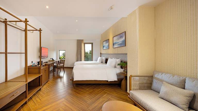 Die Zimmer im Iconic Long Hai Hotel sind mit Klimaanlage, einem Schreibtisch und einem Balkon mit Meerblick ausgestattet. Jedes Zimmer verfügt über ein eigenes Badezimmer, einen TV sowie Bettwäsche und Handtücher. Einige Zimmer bieten Stadtblick und sind mit einem Safe ausgestattet. Weitere Annehmlichkeiten umfassen einen Kleiderschrank und einen Wasserkocher.