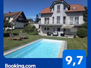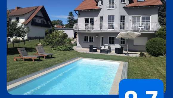 Die Unterkunft Idyllische Lage im Süden Erfurts bietet eine ruhige Atmosphäre mit einem Garten, einem saisonalen Außenpool und Blick auf die Gartenlandschaft. Sie ist in einem Gebäude aus dem Jahr 1995 untergebracht und verfügt über eine Terrasse, die den Blick auf den Pool ermöglicht.