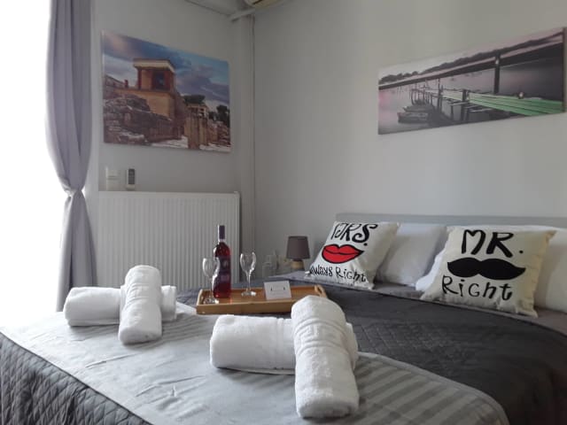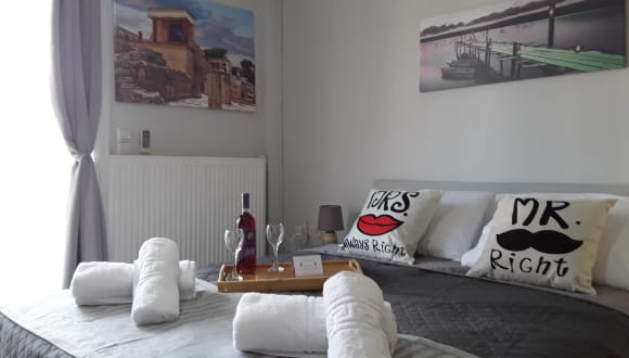 Ierapetra Suites & Studios is located in the town of Ierapetra, 800 meters from the center. It offers air-conditioned accommodation with free wi-fi and a terrace. All apartments feature tiled floors, a fully equipped kitchen with fridge, flat-screen TV and a private bathroom with shower and washing machine. They also include a stove, a kettle and a coffee maker. Junior Suite-Full equipment (all included): -Parking (Free street parking), -Internet( Free WiFi), -Kitchen (Freedom to eat whenever you want, Wine glasses, Dining table, Coffee machine, Stovetop, Oven, Kitchenware, Electric kettle,Refrigerator), -Bedroom (XL Wardrobe,Double Bed,Bedside tables,Socket near the bed,Sofa bed,floor with tile, iron, ironing board ), -Bathroom(Private bathroom,Shower,Washing machine,hairdryer,Toilet paper,Linens,Toilet), -Living Area(Dining area,Sofa,Sitting area,Desk), -Media & Technology(Flat-screen TV), -Outdoors(Outdoor furniture,Outdoor dining area,Sun deck,Patio,Balcony,Terrace,Garden), -Food & Drink(Electric Cooker, Coffee maker, Boiler, Kitchen Utensils), -Building Characteristics(Private apartment in building), -Outdoor & View( Quiet street view, Courtyard view, Garden view), -Front Desk Services (Baggage storage,Express check-in/out, 24-hour front desk), -Miscellaneous(Air conditioning, Soundproof room), -Safety & Security(Closed-circuit security cameras outside property,Closed-circuit security cameras in common areas)