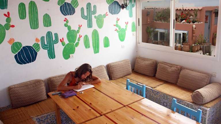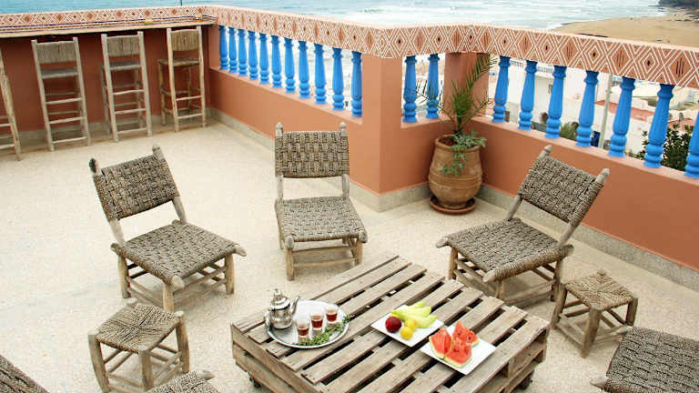 Das Ifni Surf Hostal liegt in Sidi Ifni, einem charmanten Küstenort in Marokko. Die Pension befindet sich in unmittelbarer Nähe zum Strand, so dass Sie sich jederzeit ins kühle Nass stürzen können. In der Umgebung gibt es auch einige Surfspots, die sowohl für Anfänger als auch für erfahrene Surfer geeignet sind. Sidi Ifni selbst ist bekannt für seine entspannte Atmosphäre und seine einzigartige Architektur im spanischen Kolonialstil. Machen Sie einen Spaziergang durch die Straßen und entdecken Sie die bunten Häuser und Cafés.
