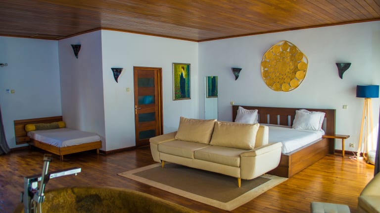 Das Ikopa Hôtel Madagascar in Antananarivo bietet eine komfortable Unterkunft mit einem Außenpool und einem schönen Garten. Das Hotel verfügt über ein Restaurant, kostenfreies WLAN und kostenlose Privatparkplätze. Die Zimmer sind gemütlich eingerichtet und einige bieten einen Balkon. Genießen Sie ein kontinentales oder amerikanisches Frühstück und entspannen Sie sich im Kinderspielplatz des Hotels. Das Hotel liegt in der Nähe von Sehenswürdigkeiten wie der Is'Art Galerie und dem Denkmal Aux Morts Antananarivo. Der internationale Flughafen Ivato ist ebenfalls leicht erreichbar.