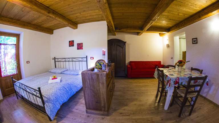 Die Apartments im Il Borgo Dei Celti sind im rustikalen Bergstil eingerichtet und bieten einen gemütlichen Rückzugsort nach einem aktiven Tag in der Natur. Die Zimmer verfügen über Parkettböden und Sichtholzbalken an den Decken. Jedes Apartment ist mit einer voll ausgestatteten Küche, Sat-TV und einem eigenen Badezimmer mit Dusche, Haartrockner und Pflegeprodukten ausgestattet.