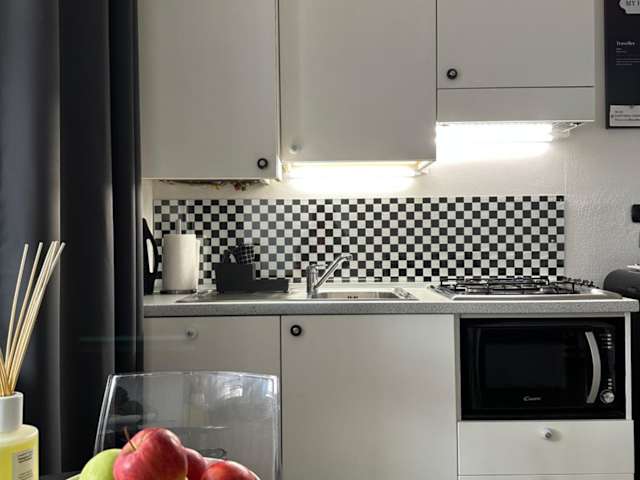 Das Monolocale umfasst ein Schlafzimmer, ein Wohnzimmer sowie eine voll ausgestattete Küche mit Kühlschrank und Wasserkocher. Das Badezimmer ist mit einem Bidet und einer Dusche ausgestattet. Handtücher und Bettwäsche werden bereitgestellt.