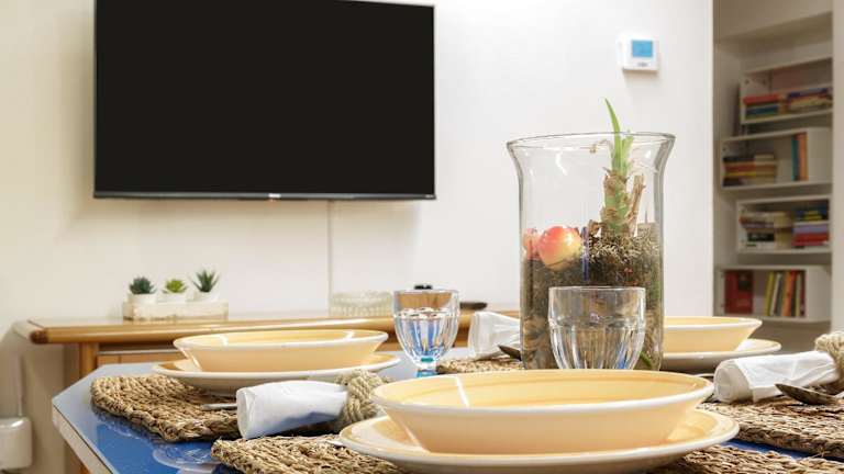 Die Ferienwohnung umfasst ein Schlafzimmer, ein Wohnzimmer und eine voll ausgestattete Küche, die mit einem Kühlschrank ausgestattet ist. Des Weiteren verfügt die Unterkunft über zwei Badezimmer, die jeweils mit einer Dusche und einem Haartrockner ausgestattet sind. Die Klimaanlage sorgt für zusätzlichen Komfort.
