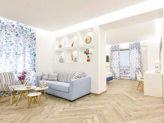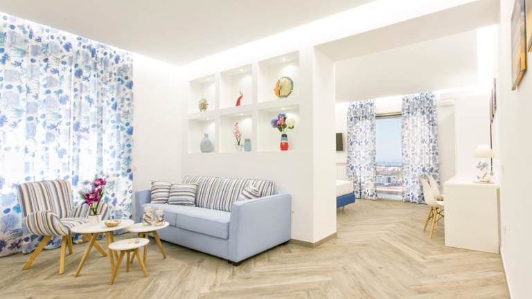 Die Il Golfo Suites in Sorrent bieten Ihnen eine wundervolle Unterkunft mit Meerblick und einer perfekten Lage in der Nähe verschiedener Strände. Die klimatisierten Zimmer sind komfortabel eingerichtet und verfügen über moderne Annehmlichkeiten. Kostenloses WLAN und ein kostenpflichtiger Flughafentransfer stehen Ihnen zur Verfügung. Entdecken Sie die Sehenswürdigkeiten von Sorrent und der Umgebung, wie das Archäologische Museum MAR und die Kirche San Gennaro. Der internationale Flughafen Neapel ist nur 48 km entfernt.