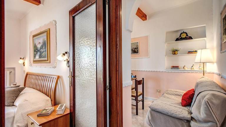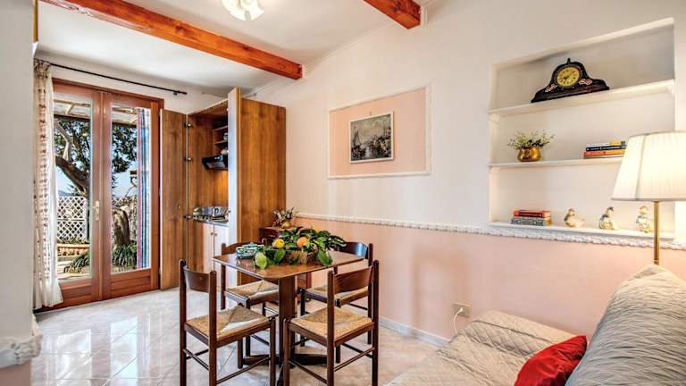 Die klimatisierte Ferienwohnung besteht aus einem Schlafzimmer, einem Wohnzimmer, einer voll ausgestatteten Küche mit einem Ofen und einer Kaffeemaschine sowie einem Badezimmer mit Bidet und Haartrockner.