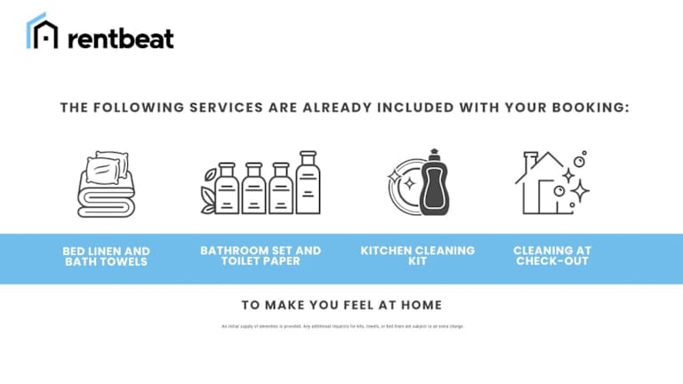 Die Ferienwohnung umfasst 1 Schlafzimmer, ein Wohnzimmer und eine voll ausgestattete Küche mit einer Mikrowelle. Zudem sind ein Badezimmer mit Bidet und kostenlosen Pflegeprodukten vorhanden. Handtücher und Bettwäsche werden bereitgestellt.