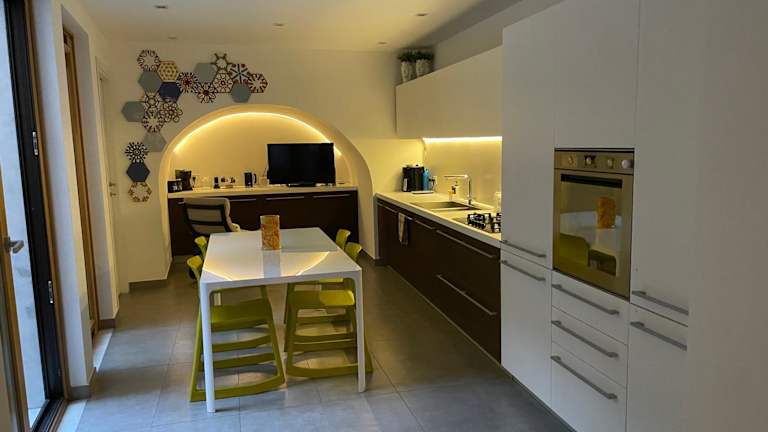 Die Ferienwohnung verfügt über ein Schlafzimmer, ein Wohnzimmer mit einem Flachbild-TV, eine gut ausgestattete Küche sowie ein Badezimmer mit einem Bidet und einer Dusche.