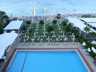 Das 4-Sterne hervorragende Hotel Iliada Beach befindet sich im Herzen von Protaras. Amerikanische Speisen werden im gastronomischen Restaurant angeboten. Die Bar serviert Cocktails sowie Snacks und Eiscreme. Außer Wäscheservice, eine medizinische Versorgung und Zimmerservice können die Gäste Einrichtungen wie ein Aufzug, ein Kosmetiksalon und ein Friseurladen nutzen. Angebote wie Dampfbäder, eine Shiatsumassage und ein türkisches Bad stehen vor Ort zur Verfügung. Aktive Touristen werden sich über die hoteleigenen Aktivitäten, u.a. Tennis, Tischtennis und Gleitschirmfliegen, freuen. Viele Sehenswürdigkeiten in Protaras wie z.B. Antonis Papadopoulos Stadium, Onissilos und Camel park liegen nur 20 Minuten vom Hotel Iliada Beach. Iliada Beach bietet eine Aussicht auf grüne Flächen und liegt direkt neben einem goldenen Strand. 15 Autominuten vom Flughafen Larnaka entfernt.