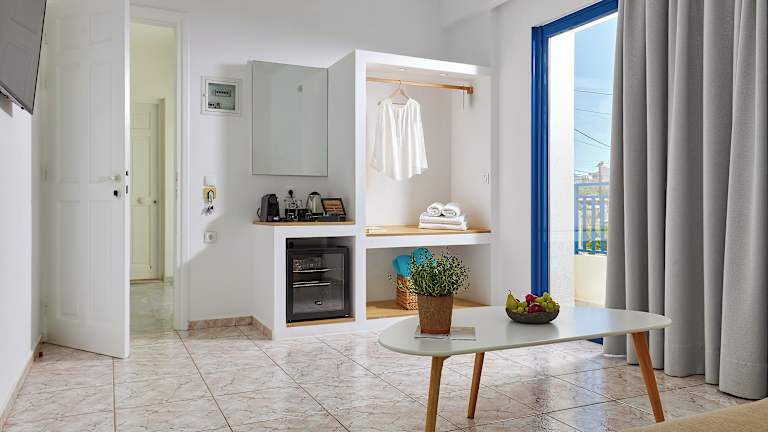 Die Zimmer in Ilios Suites sind mit einem eigenen Badezimmer mit Dusche, Haartrockner und Hausschuhen ausgestattet. Zudem stehen Balkone oder Veranden zur Verfügung, die den Gästen einen speziellen Rückzugsort bieten.