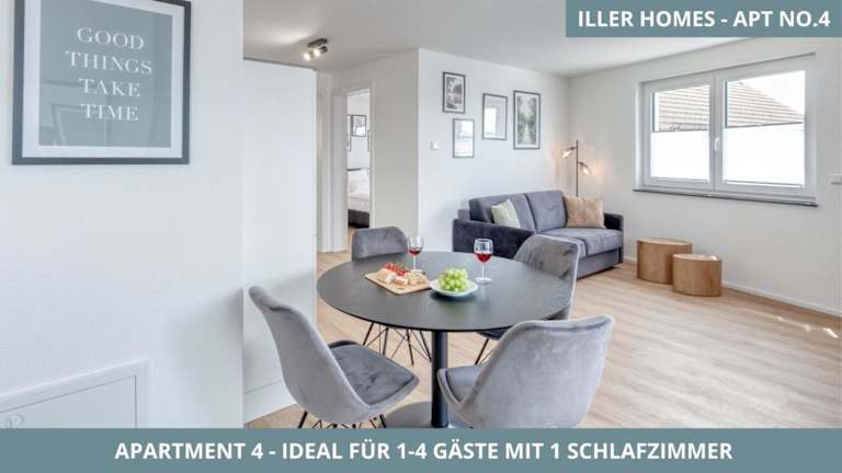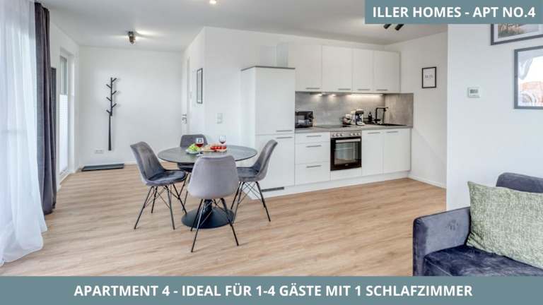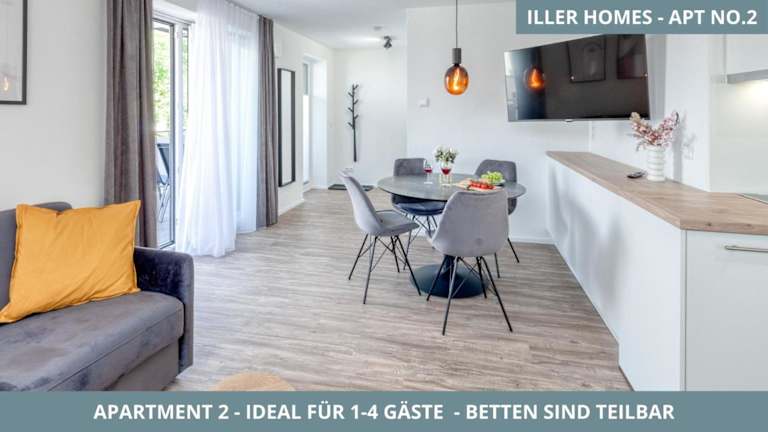 Iller Homes bietet fünf moderne Ferienwohnungen, die jeweils Platz für ein bis vier Personen bieten und mit einer eigenen Küche und einem Balkon ausgestattet sind. Kostenlose Parkplätze sind vorhanden. Bei speziellen Wünschen bezüglich Haustieren sind einige Wohnungen für maximal zwei Hunde zugelassen, gegen eine Gebühr.