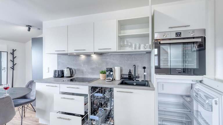 Die Ferienwohnungen sind mit kostenlosem WLAN, einem Balkon mit Stadtblick, einem Sitzbereich sowie einem Flachbild-TV ausgestattet. Die voll ausgestattete Küche verfügt über einen Kühlschrank, Geschirrspüler, Ofen, Mikrowelle, Herdplatte, Kaffeemaschine und Wasserkocher. Jedes Apartment hat ein eigenes Badezimmer mit Dusche und kostenfreien Pflegeprodukten. Schallisolierte Zimmer und allergikerfreundliche Optionen sind verfügbar.