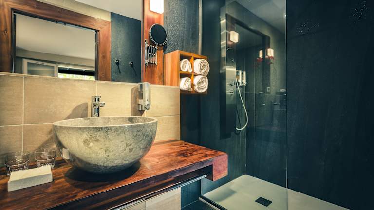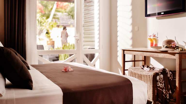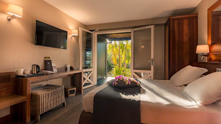STANDARDZIMMER Im Erdgeschoss oder im ersten Stock des Hauptgebäudes gelegen, in der Nähe der Restaurants und des Swimmingpool. Anzahl: 14 Fläche: 17 m² inkl. Terrasse Ausstattung: Bad mit Badewanne oder Dusche, Haartrockner, Telefon, kostenloser Safe, Sat-TV, Klimaanlage, kleiner Kühlschrank, Wasserkocher, Tassen, Tee, Kaffee, Zucker Betten: 160x180cm Belegung: 1 Erwachsener / 1 Erwachsener + 1 Kind / maximal 2 Erwachsene BUNGALOW MIT KÜCHENZEILE Ebenerdiger Bungalow inmitten des Hotelgartens. Anzahl: 20 davon 2 mit behindertengerechter Ausstattung Fläche: 32 m² inkl. Terrasse Ausstattung: Bad mit Dusche, Haartrockner, Telefon, kostenloser Safe, Sat-TV, Klimaanlage, Ventilator, möblierte Terrasse. Küchenzeile: Geschirr, zwei elektrische Herdplatten, 100 L Kühlschrank, Kaffeemaschine, Mikrowelle Betten: 160x200 cm + ein Schlafsofa mit 90x200 cm Belegung: 2 Erwachsene / 1 Erwachsener + 2 Kinder + 1 Baby / 2 Erwachsene + 1 Kind + 1 Baby TROPISCHER BUNGALOW Ebenerdiger Bungalow inmitten des Hotelgartens. Anzahl: 20 Fläche: 34 m² inkl. Terrasse Ausstattung: Bad mit Dusche, Haartrockner, Telefon, kostenloser Safe, Sat-TV, Klimaanlage, Ventilator, kleiner Kühlschrank, Wasserkocher, Tassen, Tee, Kaffee, Zucker, möblierte Terrasse Betten: 180x200cm + ein Schlafsofa mit 90x200cm Belegung: 2 Erwachsene / 1 Erwachsener + 2 Kinder + 1 Baby / 2 Erwachsene + 1 Kind + 1 Baby FAMILIENBUNGALOW Ebenerdiger Bungalow inmitten des Hotelgartens. Anzahl: 10 Fläche: 55 m² inkl. Terrasse Ausstattung: zwei Zimmer davon eins mit Bad, eine Galerie, ein Bad mit Dusche, Haartrockner, Klimaanlage, Ventilator, Telefon, kostenloser Safe, Sat-TV, eine möblierte, überdachte Terrasse Küchenzeile: Geschirr, zwei elektrische Herdplatten, 100 L Kühlschrank, Kaffeemaschine, Mikrowelle Betten: 1 Bett mit 160x190 cm + 1 Bett mit 140x190 cm + 2 Betten mit 90x190cm auf der Galerie Besetzung: 2, 3 oder 4 Erwachsene / 2 Erwachsene + 4 Kinder + 1 Baby / 3 Erwachsene + 3 Kinder + 1 Baby / 4 Erwachsene + 2 Kinder + 1 Baby GUÉTALI-ZIMMER In einer Villa mit einer Etage, privatem Swimmingpool und Parkplatz. Anzahl: 16 Fläche: 37 m² inkl. Terrasse Ausstattung: Bad mit Dusche, getrenntes WC, Haartrockner, Telefon, kostenloser Safe, Sat-TV, Klimaanlage. Küchenzeile: Geschirr, zwei elektrische Herdplatten, 100 L Kühlschrank, Kaffeemaschine, Mikrowelle ERDGESCHOSS - 4 Doppelzimmer Betten: 1 Bett mit 180 x200 cm + 1 Bett mit 90x200 cm Belegung: 2 Erwachsene / 1 Erwachsener + 2 Kinder / 2 Erwachsene + 1 Kind + 1 Baby Verbindungstür auf Anfrage - 4 3-Bett Zimmer Betten: 3 Betten mit 90x200 cm Belegung: 2 oder 3 Erwachsene / 1 Erwachsener + 1 Kind oder 2 Kinder / 2 Erwachsene + 1 Kind + 1 Baby Verbindungstür auf Anfrage OBERGESCHOSS - 8 Vierbettzimmer Betten: 2 Betten mit 160x200 cm Belegung: 2 Erwachsene / 1 Erwachsener + 2 Kinder / 2 Erwachsene + 2 Kinder / 2 Erwachsene + 1 Kind + 1 Baby