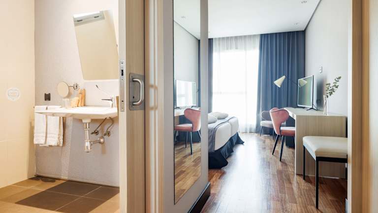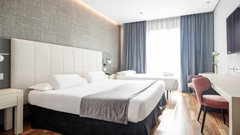 Die Zimmer im Ilunion Alcalá Norte sind geräumig und verfügen über Annehmlichkeiten wie einen Flachbild-Sat-TV, einen Schreibtisch und einen Safe. Das eigene Bad ist mit einem Haartrockner und kostenfreien Pflegeprodukten ausgestattet. Es gibt auch barrierefreie Zimmer für Gäste mit eingeschränkter Mobilität sowie für Gäste mit Hör- und Sehbehinderungen.