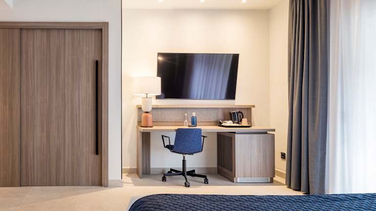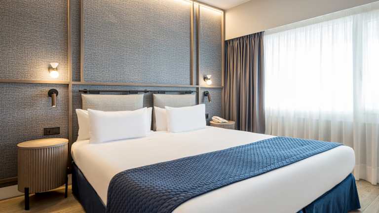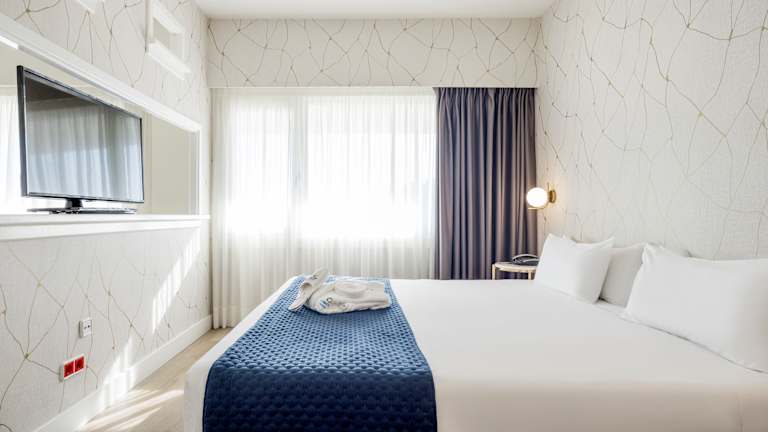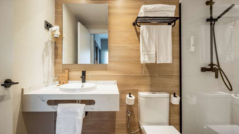 Das Hotel bietet 3 Suiten, 40 Einzel- und 47 Doppelzimmer auf 5 Etagen, die bequem mit dem Aufzug erreichbar sind. Die Zimmer sind mit Klimaanlage, Heizung, Minibar, Safe, Schreibtisch, WLAN und einem TV-Gerät ausgestattet. Die meisten Zimmer verfügen zudem über einen Balkon. Standard Doppelzimmer Das Standard Doppelzimmer ist ideal für Paare oder Geschäftsreisende. Mit einer Größe von ca. 18 m² bietet es eine komfortable und funktionale Atmosphäre für einen erholsamen Aufenthalt. Das Zimmer ist wahlweise mit zwei Einzelbetten (0,90 × 2,00 m) oder einem Doppelbett (1,35 × 2,00 m) ausgestattet und verfügt über einen Arbeitsbereich mit Schreibtisch, eine gemütliche Sitzecke am Fenster, Klimaanlage, Fernseher, Telefon und kostenloses WLAN. Das Badezimmer ist mit Dusche ausgestattet. Superior Zimmer Die Superior Zimmer sind großzügiger gestaltet und bieten mit ca. 32 m² zusätzlichen Komfort. Sie sind modern eingerichtet und eignen sich sowohl für Geschäfts- als auch für Urlaubsaufenthalte. Die Zimmer verfügen über ein Doppelbett (1,80 × 2,00 m) oder zwei Einzelbetten, einen separaten Wohn- bzw. Arbeitsbereich, Schreibtisch, Sitzecke, Klimaanlage, Fernseher und kostenloses WLAN. Superior Zimmer mit Terrasse Diese Superior Zimmer mit Terrasse bieten mit ca. 41 m² besonders viel Platz und ein noch höheres Maß an Komfort. Sie verfügen über Schlafbereich, separates Wohnzimmer mit Sofa, Arbeitsbereich mit Schreibtisch sowie eine private Terrasse, ideal zum Entspannen. Die Zimmer sind mit Doppelbett oder zwei Einzelbetten, Klimaanlage, Fernseher und kostenlosem WLAN ausgestattet. Familien- / Vierbettzimmer Die Familien- bzw. Vierbettzimmer sind die geräumigste Zimmerkategorie des Hotels und bieten ca. 41 m². Sie verfügen über zwei Schlafzimmer, einen zentralen Wohnbereich sowie eine Terrasse, wodurch sie sich ideal für Familien oder Gruppen von bis zu vier Personen eignen. Die Zimmer sind modern ausgestattet und bieten alle Annehmlichkeiten für einen komfortablen Aufenthalt. Barrierefreies Zimmer Die barrierefreien Zimmer sind speziell für Gäste mit eingeschränkter Mobilität konzipiert. Sie bieten großzügige Räume, stufenlosen Zugang, angepasste Ausstattung und garantieren Komfort, Sicherheit und Selbstständigkeit während des gesamten Aufenthalts. Alle grundlegenden Services wie WLAN, Klimaanlage und Fernseher sind ebenfalls vorhanden. ILUNION Hotels ist eine pet‑friendly Hotelkette, die den Aufenthalt von Haustieren in ihren Hotels nach vorheriger Anmeldung bei der Reservierung und gegen Zahlung eines zusätzlichen Aufpreises erlaubt. Gäste, die mit ihrem Haustier reisen, verfügen über angepasste Zimmer und erhalten ein Willkommens‑Kit, um einen komfortablen und respektvollen Aufenthalt für alle zu gewährleisten.