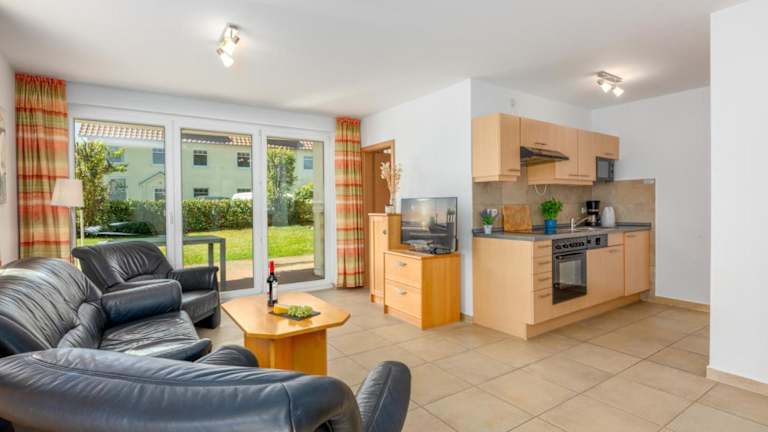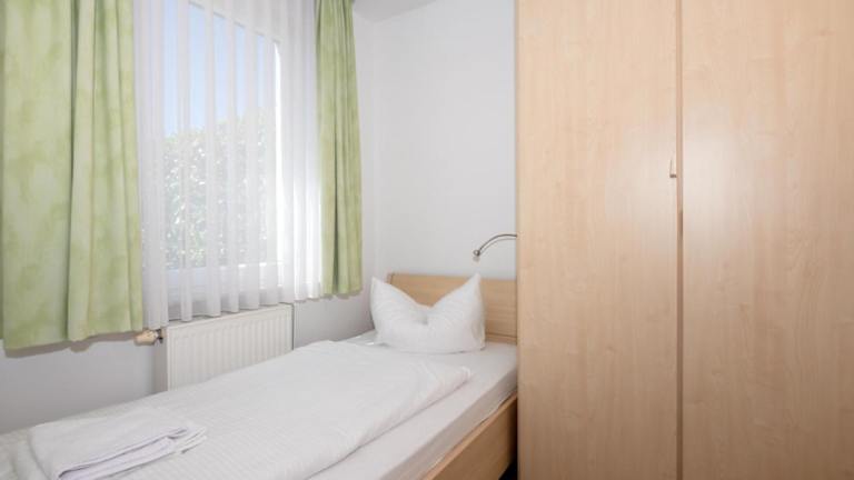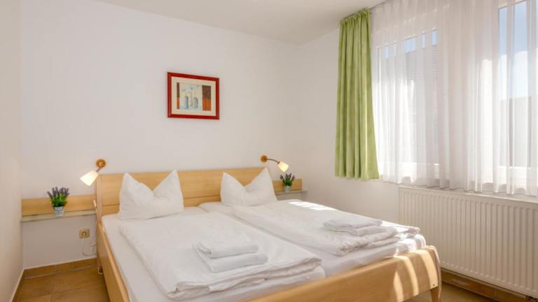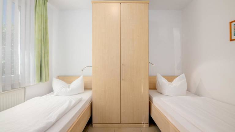 Die Ferienwohnung besteht aus zwei separaten Schlafzimmern, einer voll ausgestatteten Küchenzeile mit Kühlschrank und Geschirrspüler sowie einem Badezimmer. Es stehen Familienzimmer zur Verfügung.