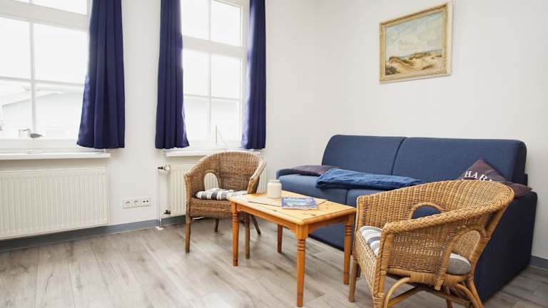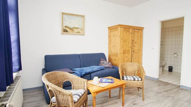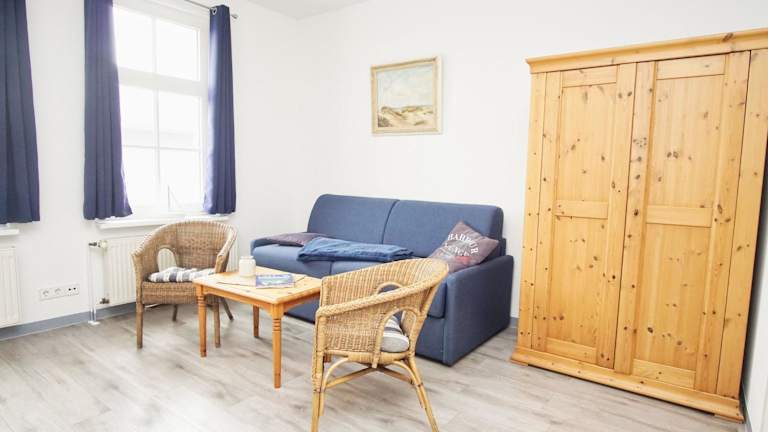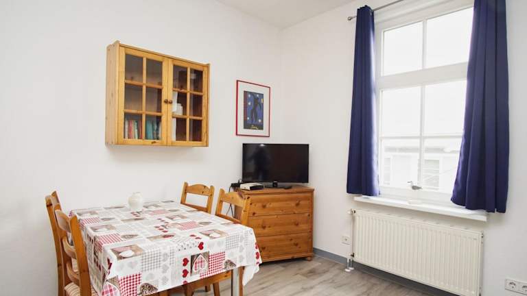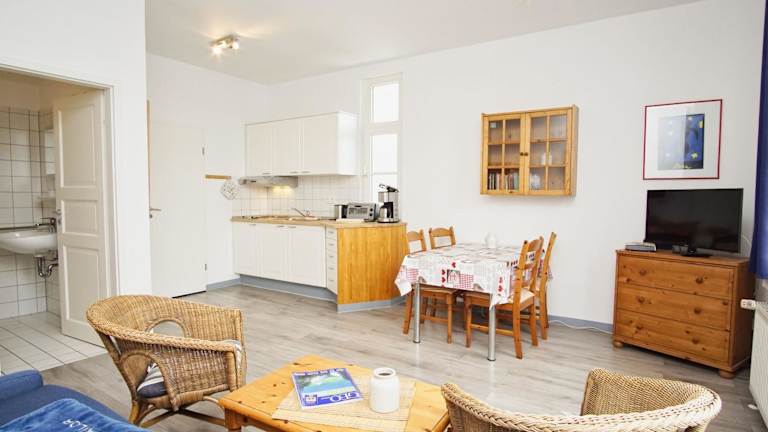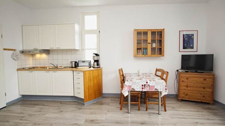 Die Ferienwohnung verfügt über ein Wohnzimmer und eine voll ausgestattete Küche, die mit einem Kühlschrank und einer Herdplatte eingerichtet ist. Ein TV ist ebenfalls vorhanden. Die Wohnung ist Nichtraucher und in allen Bereichen steht WLAN zur Verfügung.