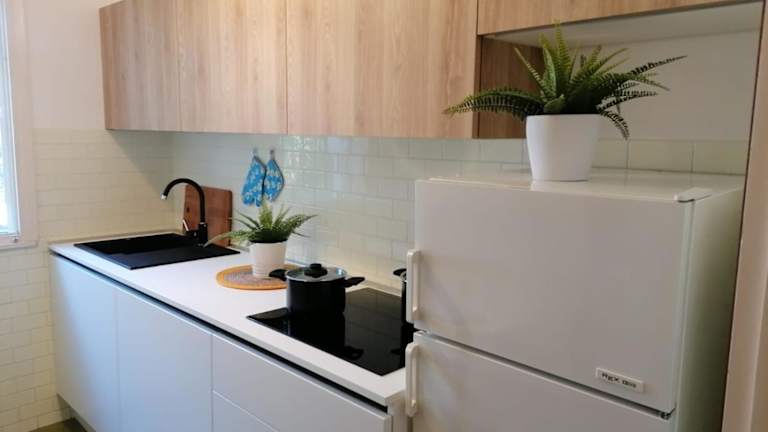 Die Ferienwohnung besteht aus einem Schlafzimmer, einem Wohnzimmer und einer voll ausgestatteten Küche, die mit einem Kühlschrank und einem Wasserkocher ausgestattet ist. Das Badezimmer verfügt über ein Bidet und einen Haartrockner. Handtücher und Bettwäsche werden zur Verfügung gestellt und die gesamte Wohnung ist klimatisiert.