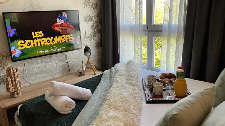 Die Unterkunft Immodēly & la Magie de Disney befindet sich in Serris in der Region Île-de-France, in der Nähe der Val d'Europe RER Station, die einen bequemen Zugang zu öffentlichen Verkehrsmitteln bietet. Disneyland Paris ist 3,1 km entfernt, während der Bahnhof Paris Gare de Lyon 36 km von der Unterkunft entfernt liegt. Der nächstgelegene Flughafen ist der Flughafen Paris-Charles-de-Gaulle, welcher 27 km entfernt ist.