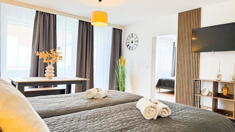 ImmoStay Waterfront Apartments - Balkon über Bremen & Parking bietet gut ausgestattete Wohneinheiten mit Balkon und kostenlosem WLAN. Die Unterkunft legt Wert auf Familienfreundlichkeit mit einem Kinderspielplatz und zusätzlichen Annehmlichkeiten für Kinder.