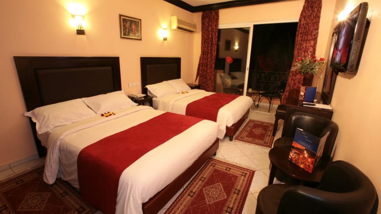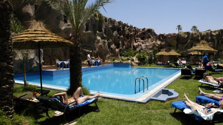 Das Hotel Imperial Holiday & Spa in Marrakesch bietet eine ideale Lage im Stadtzentrum und ist nur eine kurze Fahrt vom berühmten Platz Jamaa El Fna entfernt. Hier können die Gäste einen entspannten Aufenthalt genießen und sich im Außenpool, in der Sauna oder im Fitnessraum verwöhnen lassen. Die Zimmer sind klimatisiert und die meisten verfügen über einen Balkon. Das hoteleigene Restaurant serviert internationale und marokkanische Küche, während auf der Dachterrasse des Hotels Cocktails mit Panoramablick über Marrakesch genossen werden können. Ein weiterer Ort zum Entspannen ist die Poolbar The Niagara Falls, wo die Gäste Unterhaltung vor Ort genießen können. Das Hotel bietet einen 24-Stunden-Service an der Rezeption und befindet sich nur 2 Gehminuten vom Einkaufszentrum Marrakech Plaza entfernt. Der Flughafen Menara ist eine 15-minütige Fahrt entfernt.