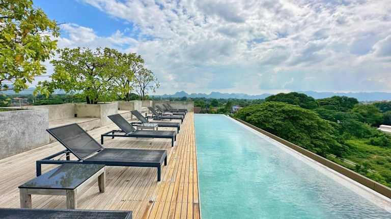 Das Inchantreedoopool in Kanchanaburi bietet seinen Gästen eine komfortable Unterkunft in der Nähe der berühmten Brücke des Flusses Kwai. Mit kostenfreien Fahrrädern, einem Außenpool und kostenfreiem WLAN können Sie hier einen erholsamen Aufenthalt genießen. Das Hotel verfügt über gut ausgestattete Zimmer mit Bergblick und ein leckeres Frühstück wird täglich serviert. Billard und Autovermietung sind weitere Freizeitmöglichkeiten, die das Hotel bietet.