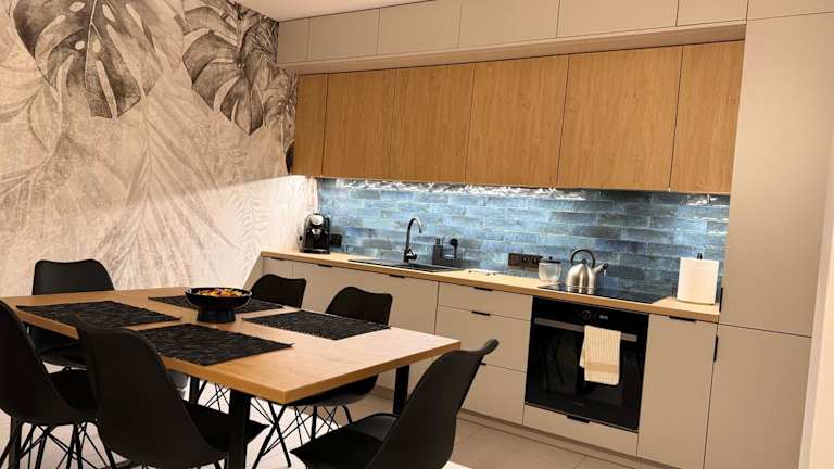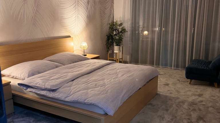 Die Ferienwohnung verfügt über drei Schlafzimmer, ein Wohnzimmer und eine voll ausgestattete Küche, die mit einem Kühlschrank und einer Kaffeemaschine ausgestattet ist. Zudem stehen zwei Badezimmer mit einer Dusche und einem Haartrockner zur Verfügung. Handtücher und Bettwäsche sind ebenfalls vorhanden.