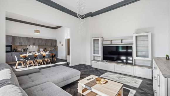 Infinity Stay Kaiser Wilhelm Bruecke ist eine Unterkunft mit einem komfortablen Sitzbereich und einer modernen Ausstattung.