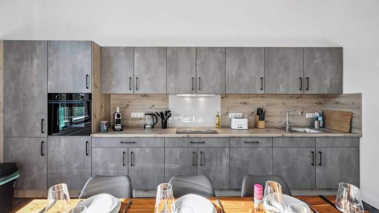 Die Unterkunft verfügt über eine gut ausgestattete Küche, die einen Kühlschrank, Geschirrspüler, Ofen, Herdplatte, Toaster, Kaffeemaschine und Wasserkocher umfasst.