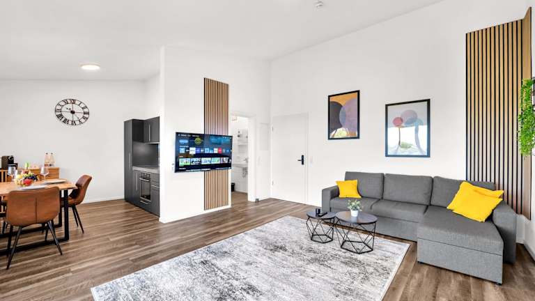 INhome - Küche - TV - Parken - Balkon bietet seinen Gästen eine gut ausgestattete Unterkunft, die modernes Wohnen mit einer heimischen Atmosphäre verbindet. Die Unterkunft ist ideal für Reisende, die Wert auf Unabhängigkeit und Komfort legen.