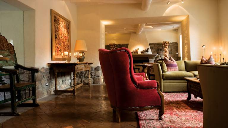 Die Zimmer im Inkaterra La Casona sind luxuriös und bieten eine einzigartige Atmosphäre. Sie sind mit Marmorkaminen, antiken Kronleuchtern und eleganten Möbeln ausgestattet. Die dunklen Holzvertäfelungen, die bequemen Sofas und die kostbaren Stoffe verleihen den Zimmern eine warme und gemütliche Atmosphäre. Das Badezimmer ist mit einer freistehenden Badewanne aus Stein ausgestattet, die zum Entspannen einlädt.