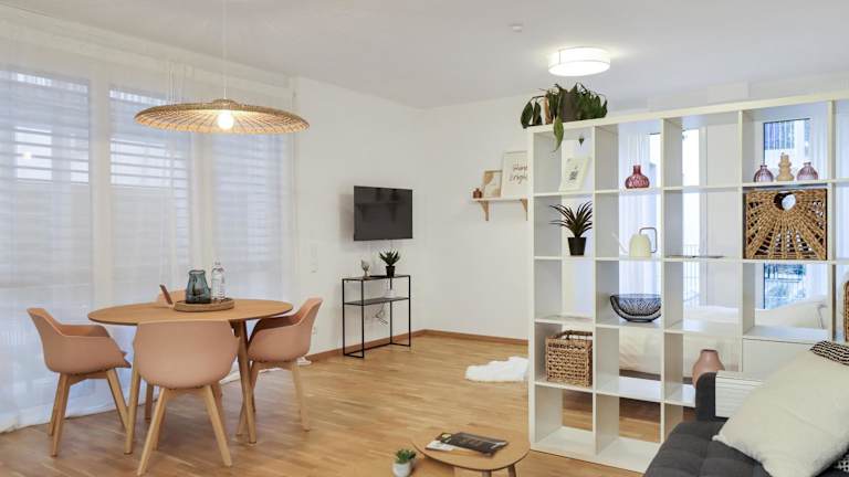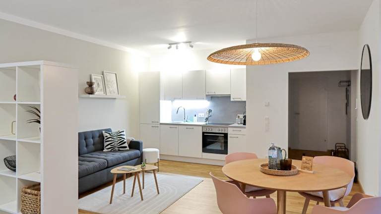 Die Ferienwohnung verfügt über ein Schlafzimmer, eine voll ausgestattete Küche und ein Badezimmer. Zur Ausstattung gehört ein Flachbild-TV.