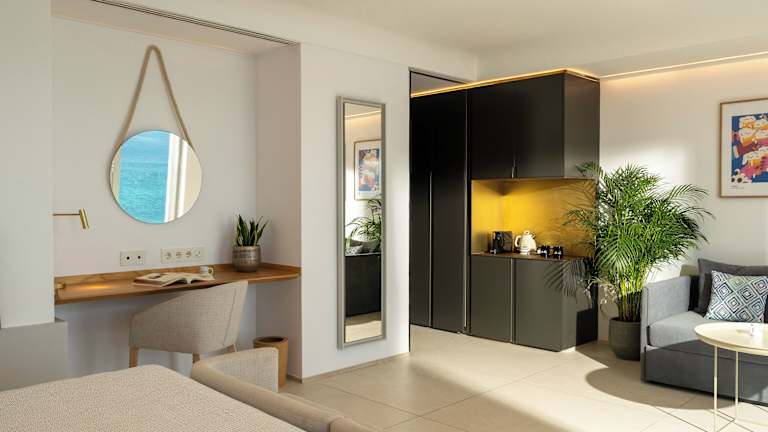 Die Zimmer im INNSiDE Alicante Porta Maris sind der perfekte Ort, um zu entspannen, zu arbeiten und in einem einzigartigen Reiseziel zu genießen. Unsere modernen Zimmer bieten alles, was Sie für einen komfortablen Aufenthalt benötigen, mit privater Terrasse, Smart-TV und saisonaler Klimaanlage. Genießen Sie den atemberaubenden Blick auf den Yachthafen oder die Bucht von Alicante direkt von Ihrem Zimmer aus. Für mehr Platz und Flexibilität bieten unsere Lofts und Townhouses einen separaten Wohnbereich, ideal für entspannte Momente oder produktive Arbeitszeiten in einer inspirierenden Umgebung.