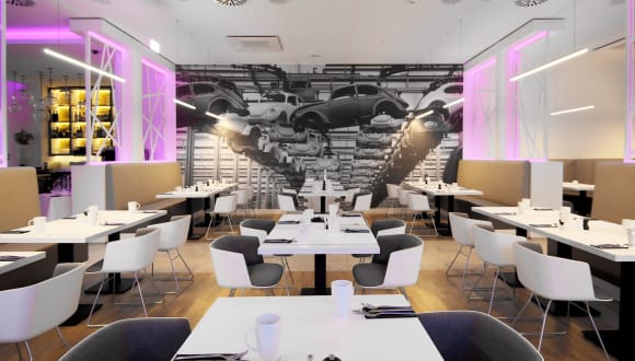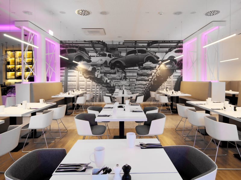 Im gastronomischen Bereich stehen die Optionen eines klimatisierten Restaurants und einer Bar zur Verfügung. Täglich wird ein Frühstücksbuffet angeboten, das auch vegetarische und vegane Gerichte umfasst. Das Gourmetrestaurant bietet eine Sommerterrasse, und die Skybar ermöglicht den Gästen, bei Aussicht auf das Volkswagengebäude zu entspannen.