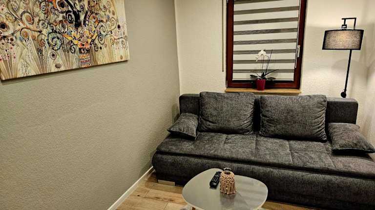 Die Ferienwohnung umfasst ein Schlafzimmer, ein Wohnzimmer sowie eine voll ausgestattete Küche, die mit einem Kühlschrank und einer Kaffeemaschine ausgestattet ist. Zudem gibt es ein Badezimmer mit Dusche und Haartrockner. Die Unterkunft stellt Handtücher und Bettwäsche zur Verfügung und bietet ein Wasserbett für zusätzlichen Komfort.
