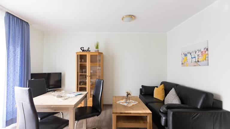 Das Inselglück App 3 bietet ein gemütliches und gut ausgestattetes Apartment mit einem Schlafzimmer. Das Wohnzimmer verfügt über einen Flachbild-TV, ideal zum Entspannen nach einem langen Tag am Strand. Die voll ausgestattete Küchenzeile bietet alles, was Sie für die Zubereitung von Mahlzeiten benötigen, einschließlich Kühlschrank und Geschirrspüler. Das Badezimmer verfügt über eine Dusche. Darüber hinaus gibt es einen Balkon, auf dem Sie die frische Luft und die Aussicht genießen können. Kostenloses WLAN ist ebenfalls verfügbar, damit Sie mit Ihren Lieben in Kontakt bleiben können.