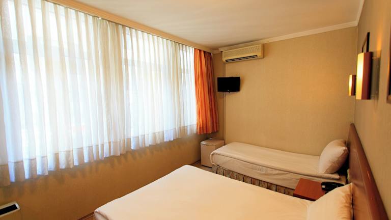 Das Hotel Inter Istanbul ist ideal für Reisende, die im historischen Viertel Beyazit/Sultanahmet übernachten möchten. Mit seiner Lage gegenüber dem Großen Basar und nur 2 Gehminuten von der Straßenbahnhaltestelle Beyazit entfernt, bietet das Hotel eine bequeme Anbindung an die wichtigsten Sehenswürdigkeiten der Stadt. Die Zimmer sind modern eingerichtet und verfügen über Annehmlichkeiten wie Klimaanlage, LCD-Sat-TV und kostenfreies WLAN. Das kostenfreie Frühstücksbuffet bietet eine große Auswahl an warmen und kalten Speisen. Die freundlichen Mitarbeiter an der 24-Stunden-Rezeption stehen Ihnen gerne bei Fragen zur Verfügung und helfen Ihnen gerne bei der Organisation von Transport und Ausflügen.
