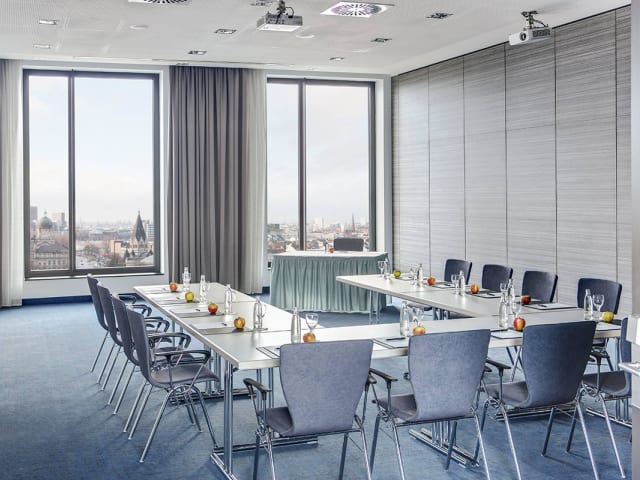 275 Zimmer, Klimaanlage, Minibar, Schreibtisch, Safe, Föhn, Kosmetikspiegel, WLAN bis zu einer Bandbreite von 256 kb/s inklusive, SAT-TV (mit kostenfreien Sky-Kanälen), Telefon mit Voicemail, Faxanschluss, behindertengerechtes Zimmer, Raucheretage