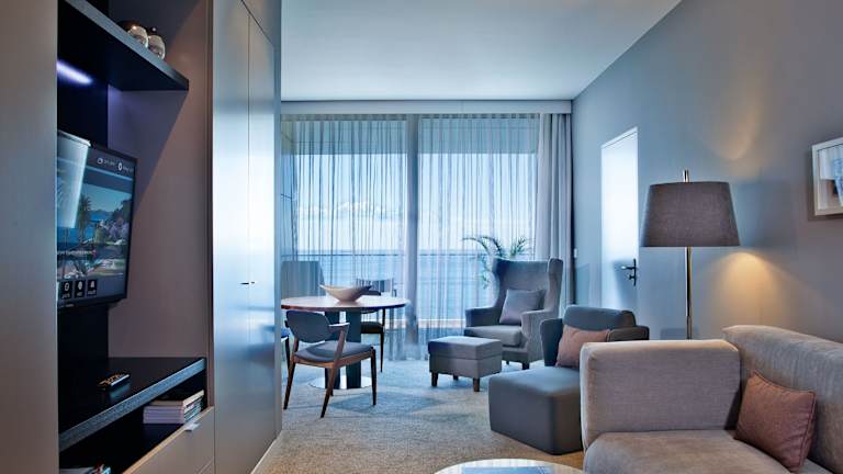 Die Zimmer des Hotels sind modern und komfortabel mit Klimaanlage, einem eigenen Bad, Flachbild-Kabel-TV, Minibar und Safe ausgestattet. Die meisten Zimmer bieten einen Balkon oder eine Terrasse mit Panoramablick auf das Meer. Zusätzliche Annehmlichkeiten umfassen eine Tee-/Kaffeemaschine, Bügelset und WLAN. Es stehen auch rollstuhlgerechte Zimmer zur Verfügung, die über barrierefreie Badezimmer verfügen.