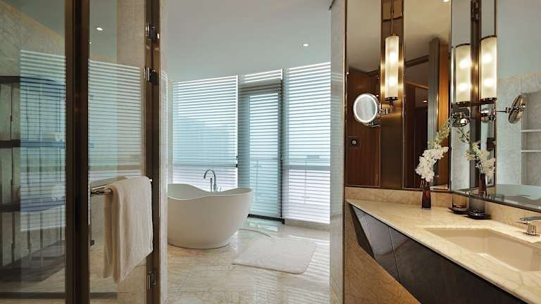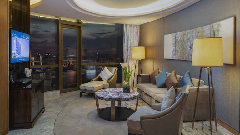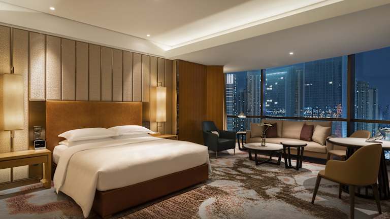 Das InterContinental Changsha bietet 396 komfortable Zimmer, die elegant und einfach gehalten sind und ein entspannendes Ambiente bieten. Die Zimmer sind mit gemusterten Teppichböden und großen raumhohen Fenstern ausgestattet, die viel natürliches Tageslicht hereinlassen. Von den oberen Etagen aus haben Sie einen Panoramablick auf die Stadt und den Fluss Xiang. Jedes Zimmer verfügt über ein geräumiges Badezimmer mit Dusche, Badewanne und kostenlosen Pflegeprodukten.