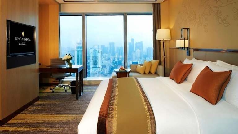 Die klimatisierten Zimmer im InterContinental Fuzhou verfügen über Teppichboden, einen Sitzbereich, Flachbild-Kabel-/Sat-TV, eine Minibar und einen Wasserkocher. Einige Zimmer haben Zugang zur Executive Lounge. Die Unterkünfte sind schallisoliert und es gibt allergikerfreundliche Zimmer.