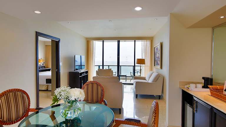 Das Bay View Restaurant im Hotel ist auf Buffet-Service spezialisiert und bietet einen herrlichen Blick auf den Jachthafen. Hier können Sie typisch panamaische Gerichte, Meeresfrüchte, spanische Küche und eine große Auswahl an Desserts genießen. Die Lobbybar lädt zum Verweilen bei Getränken ein.