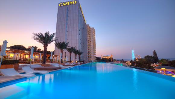 Das Hotel befindet sich nur 20 m vom Sandstrand im Zentrum von Goldstrand, einem beliebten bulgarischen Badeort. Restaurants, Bars und Nachtclubs sind in etwa 5 Minuten zu Fuß erreichbar. Die nächsten öffentlichen Verkehrsanbindungen sind ebenfalls in rund 10 Minuten zu Fuß zu erreichen. Der Aquapark ist ca. 20 Minuten zu Fuß entfernt. Warna ist etwa 20 km entfernt und der Flughafen Warna liegt nur 35 km vom Hotel.