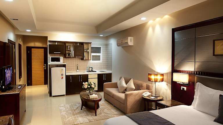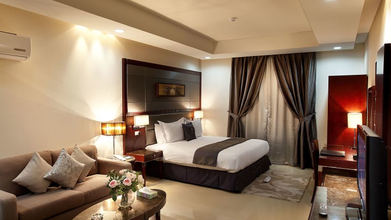 Das Intour Qurtoba Hotel Suites befindet sich in Riad, etwa 12 Kilometer vom Stadtzentrum, dem Flughafen und dem Bahnhof entfernt.