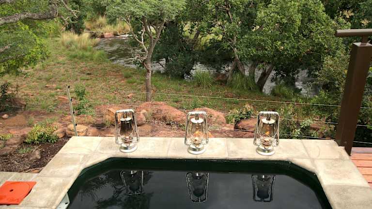 Die Inzalo Safari Lodge im Welgevonden Wildreservat in Limpopo ist eine einzigartige Unterkunft, die Zeltsuiten mit atemberaubender Aussicht und kostenlosem WLAN bietet. Genießen Sie Ihr eigenes Tauchbecken auf der privaten Terrasse und entspannen Sie im luxuriösen Badezimmer mit Badewanne und Innen- und Außendusche. Beginnen Sie Ihren Tag mit einem köstlichen kontinentalen Frühstücksbuffet und erleben Sie aufregende Safari-Abenteuer wie Pirschfahrten, Flussspaziergänge und Tierbeobachtungen.