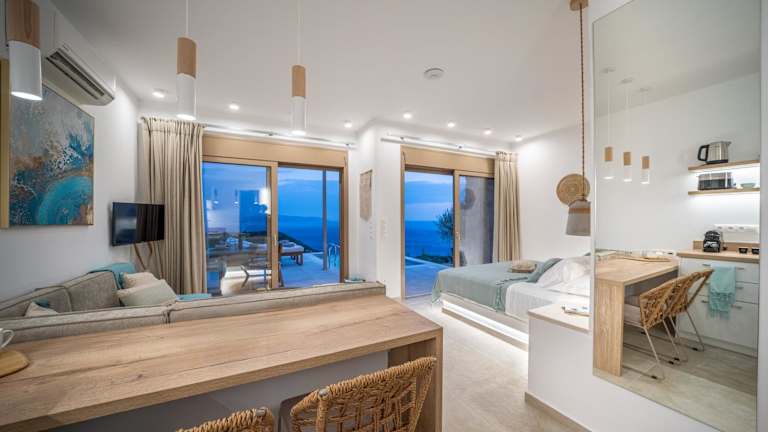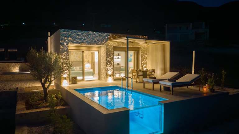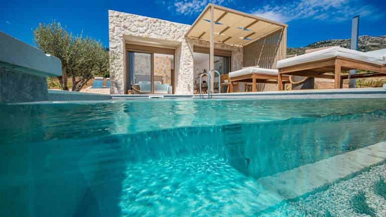 Ionian Horizon - Private Bungalows bietet Übernachtungsmöglichkeiten direkt am Strand mit einem Außenpool, Garten und eigenem Strandbereich. Es stehen kostenfreies WLAN und Privatparkplätze zur Verfügung.