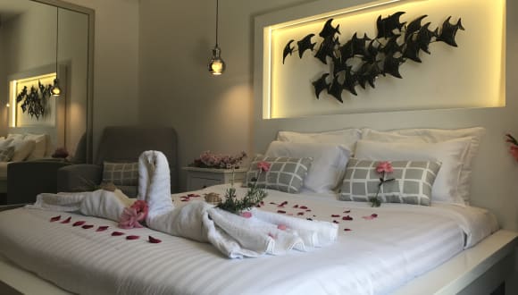 The sensation of elegance can be found in the rooms with wide spaces in white colors , natural fabrics, marble floors, which blend seamlessly for a healthy sleep. The deluxe junior suites (28m2) are located at the ground or first floor. Each suite features a marble bathroom with rain fall shower, free premium toiletries and slippers, toilet, air conditioning free of charge, safety box free of charge, pool towels free of charge, satellite TV, free WiFi and a large furnished balcony. ROOM AMENITIES Newly built Unique designed furnitures King sized double bed Pillow menu Large furnished balcony Luxury bathroom with bathtub or rain fall shower Luxury bath amenities Shower Individual A/C Safety Box Towels & Bathrobes Beach Towels Nespresso Machine Fridge Tea/Coffee making facilities Led TV Hairdryer iPod/iPhone speaker dock Daily maid service (except Sundays) Afternoon turndown service upon request (fees applied) Iron Early check in/late check out upon availability Information Package Concierge services with direct contact 24/7