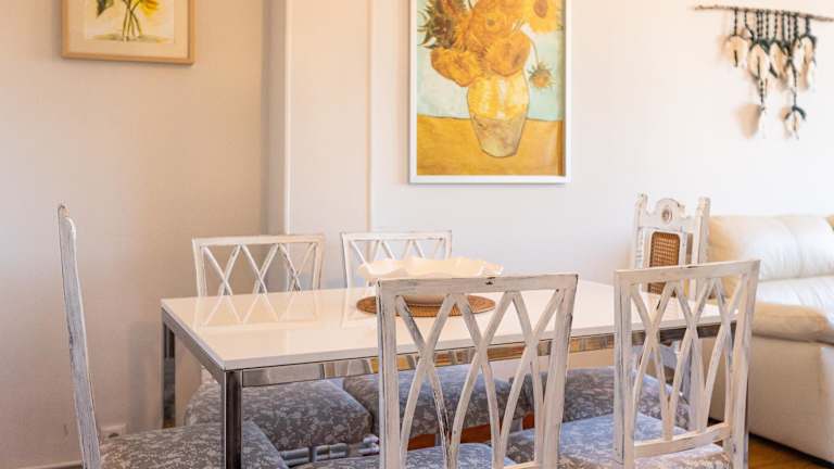 Die Wohnung verfügt über Parkettböden und umfasst 3 Schlafzimmer sowie ein Badezimmer, das mit einem Bidet, einer Dusche und kostenlosen Pflegeprodukten ausgestattet ist. Die Küche ist vollständig ausgestattet mit einem Kühlschrank, Geschirrspüler, Ofen, Kaffeemaschine und Wasserkocher.