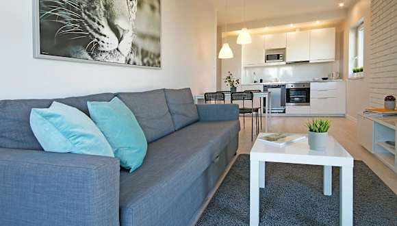 Die Unterkunft befindet sich in Danzig in der Region Pommern, lediglich 2,5 km vom Strand Brzeźno entfernt. Der Bahnhof Danzig-Saspe ist 1,8 km und die Olivia Hall 1,4 km entfernt. Der nächstgelegene Flughafen, der Lech-Wałęsa-Flughafen Danzig, liegt in einer Distanz von 10 km.